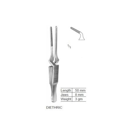 Bulldog Clamps, DIETHRIC, 5 cm, Jaw 8 mm, weight 3 G, curved